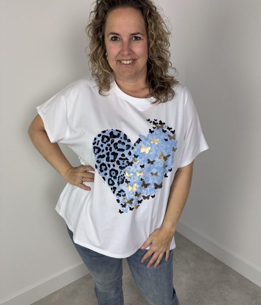 T shirt hart vlinder blauw