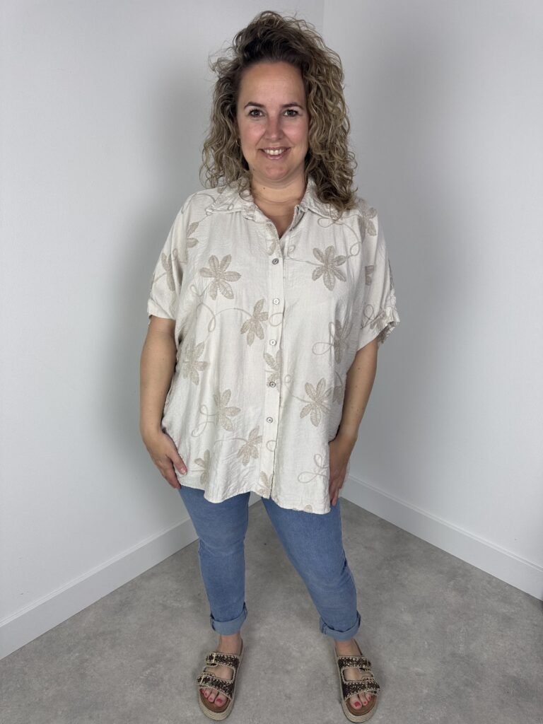 Home / Winkel / Blouse beige met glinster knoopjes nr. 046