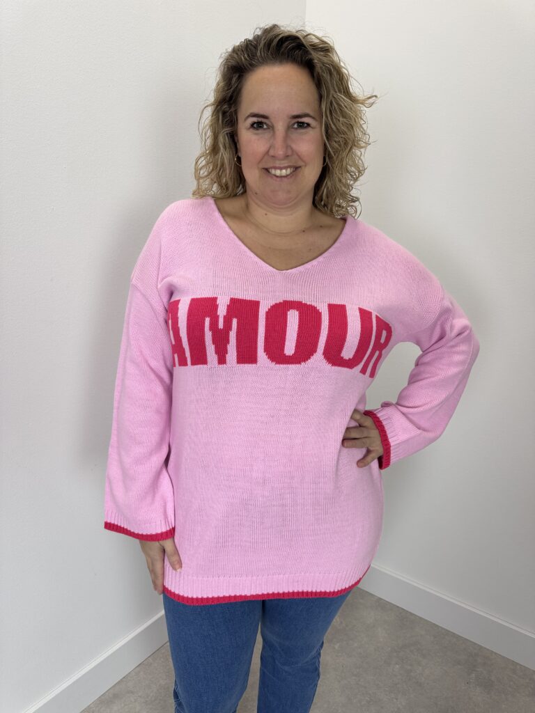 Home / Winkel / Trui Amour licht roze /donkerroze nr. 3012