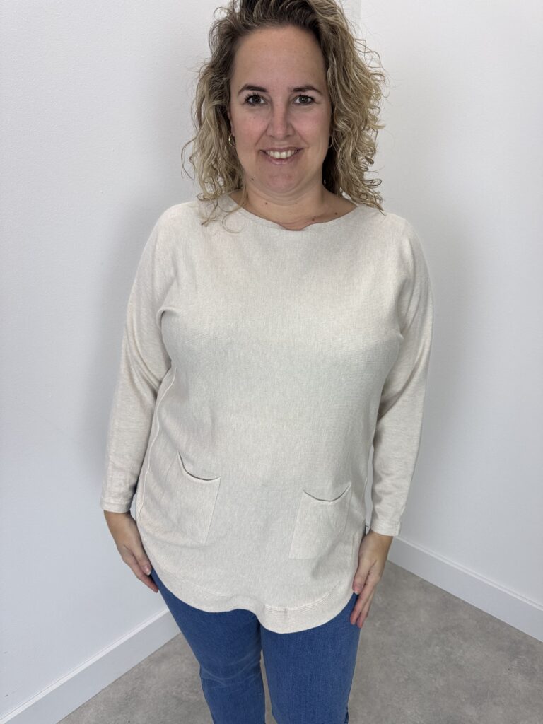 Home / Winkel / Trui kort model met knoopjes op rug beige nr 512