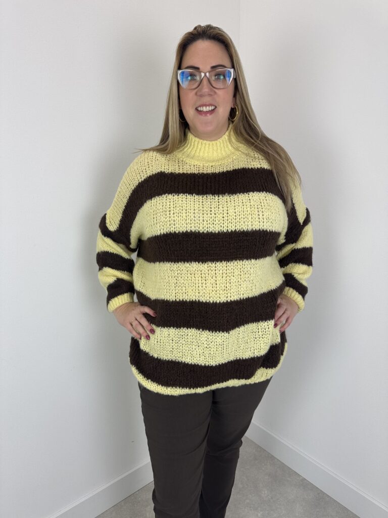 Home / Winkel / Trui streep geel/bruin